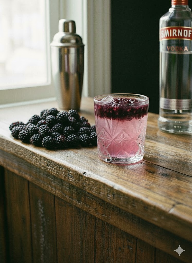 Gin, limão, xarope de amora