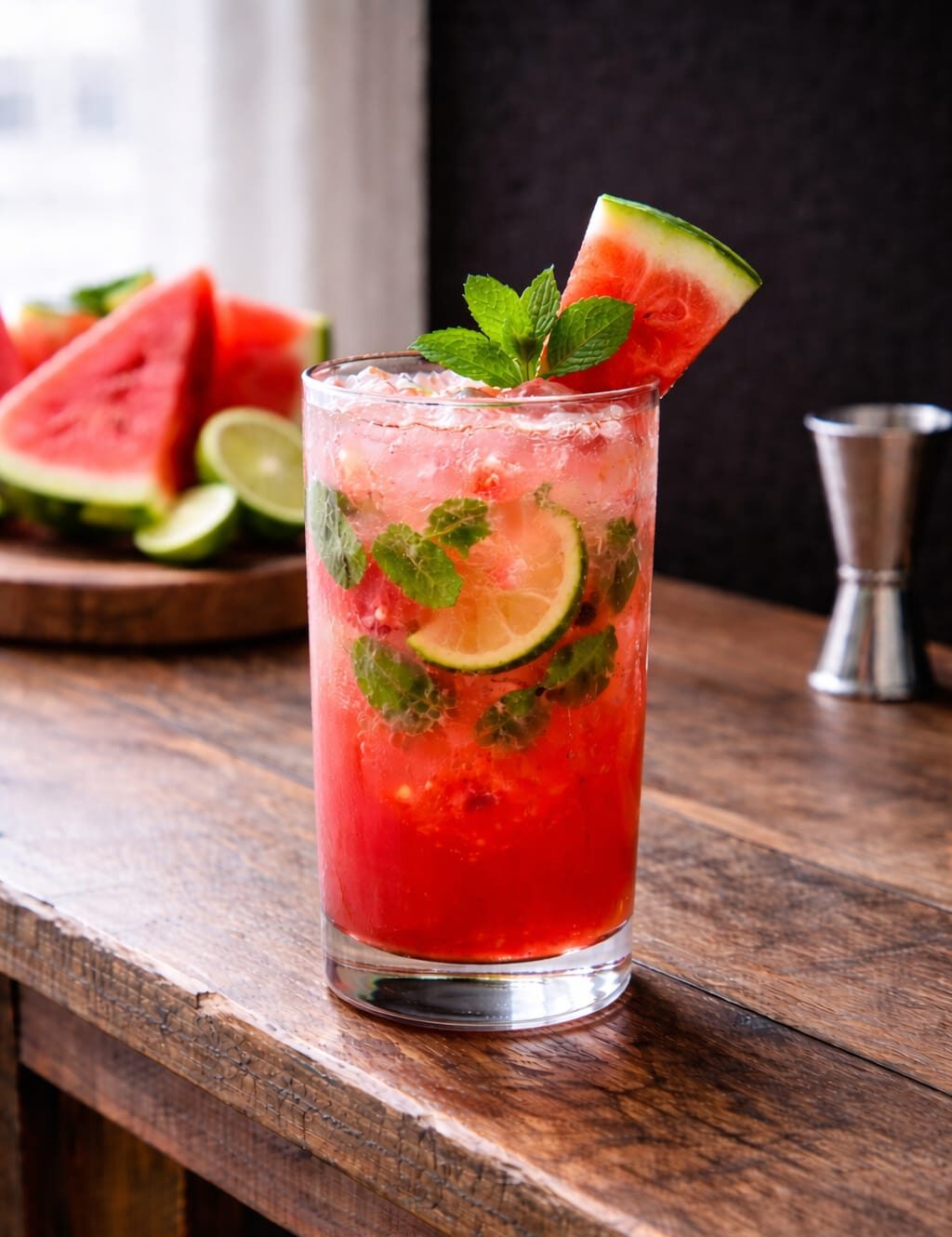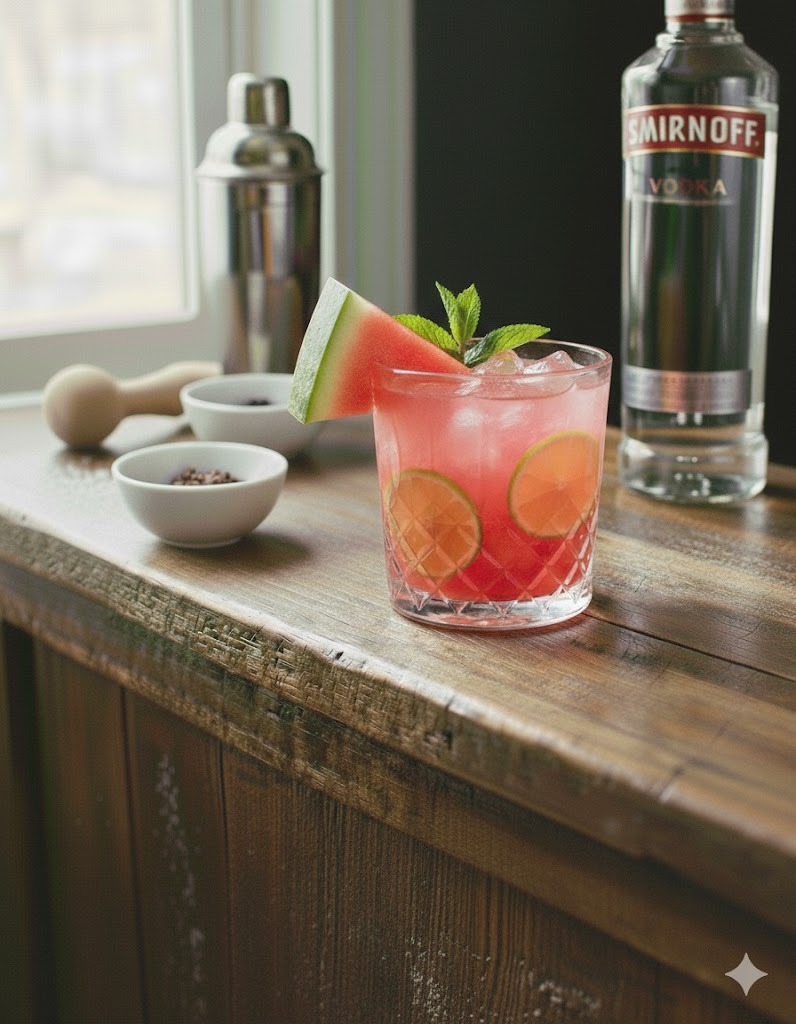 Suco de melancia, limão e hortelã.