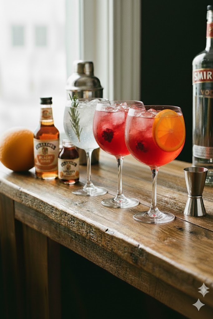Gin, tônica e frutas frescas